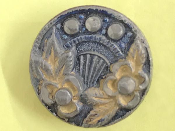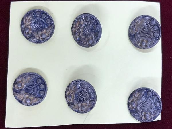 【 イギリス製アンティークアール・デコ花模様メタルボタン6個 】