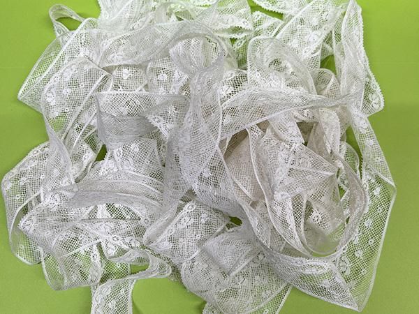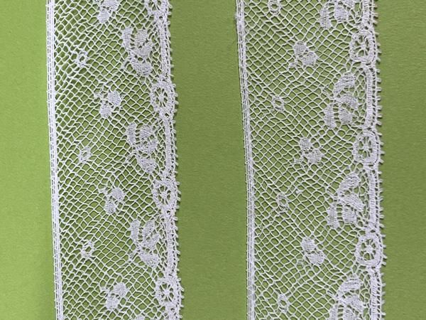 花と蕾が全体に配され裾にはピコット飾りが付いた人形ドレス製作には