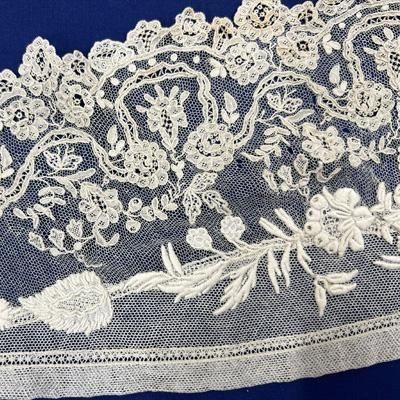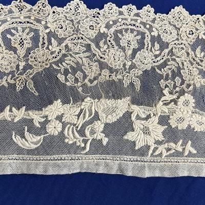 広幅の部分には分厚く盛り上げて刺繍された花々の連続模様で飾られ