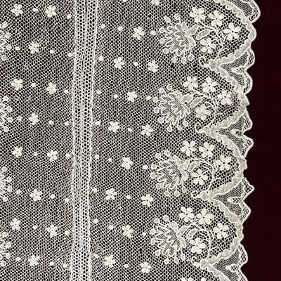 幕を垂らした様な裾模様、幕の間にボンボン型の花束が規則正しく並び、