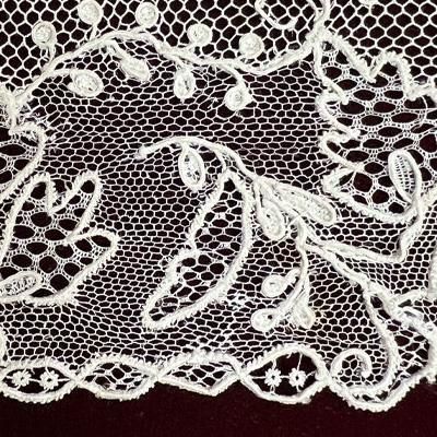 アランソン独特の硬く立体的に盛り上げた線で植物模様を描き