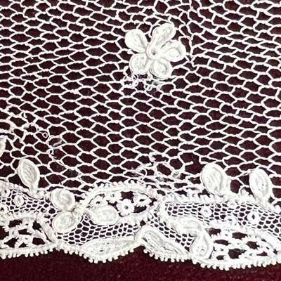 非常に凝った繊細な縁飾り、メッシュの上には葉と花の一枝のモチーフは