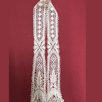 肌に優しい細い絹糸で幾何学模様が編まれた飾り用ラペットです。