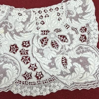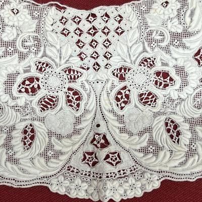 【フランス製 1800年代 ドローンワーク・刺繍・レース 白色襟飾り】