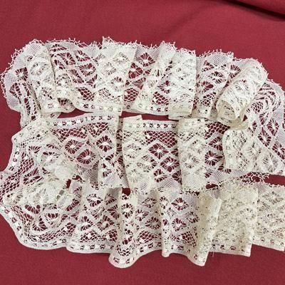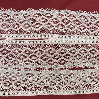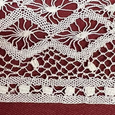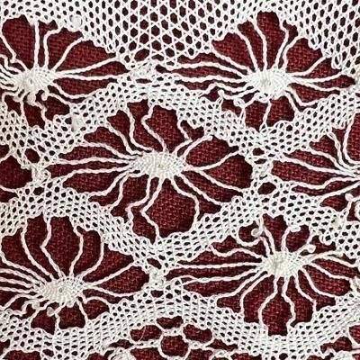 薄い生成り色で細い糸で編まれた幾何学模様の