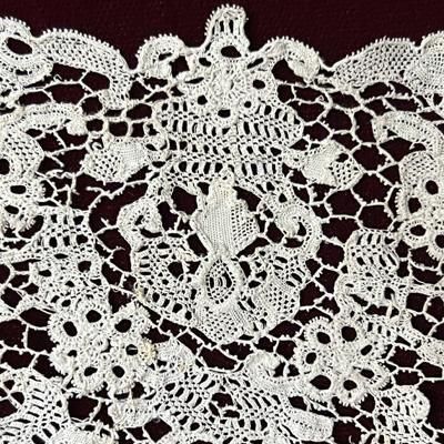 細い糸で編まれたニードルポイントレースでヴェニスにて1600年代に制作されたと思われます。